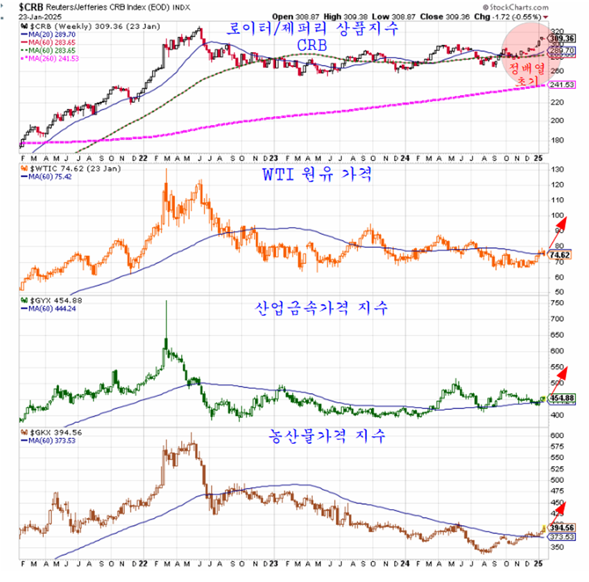 쥬라기: 2022년 이후 장기간 정체한 상품지수 CRB가 정배열 상승을 시작합니다.