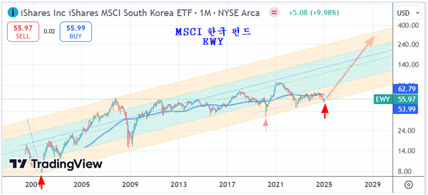 쥬라기: 2021년 저점 이후 24년 만에 같은 바닥의 모습에서 상승이 시작되고 있죠.