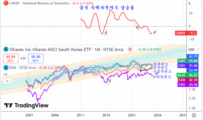 쥬라기: 한국과 브라질 중국과 신흥국 펀드는 비슷한 모습을 보이며 함께 움직이죠.