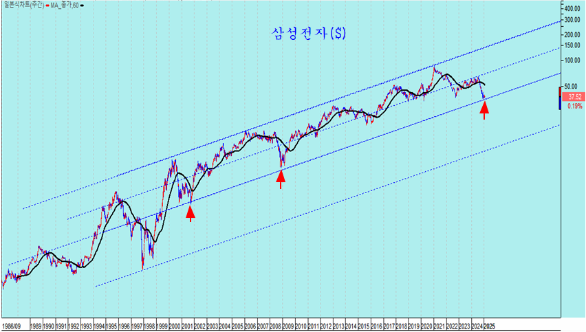 쥬라기: 이 기업의 경우 대세 채널의 하단에 접한 경우는 1998년 외환위기