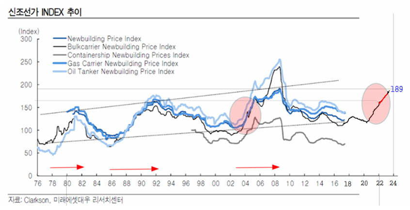 쥬라기: 조선 가격과 조선 기업의 주가로 보는 경기는 2000년대의 경기가