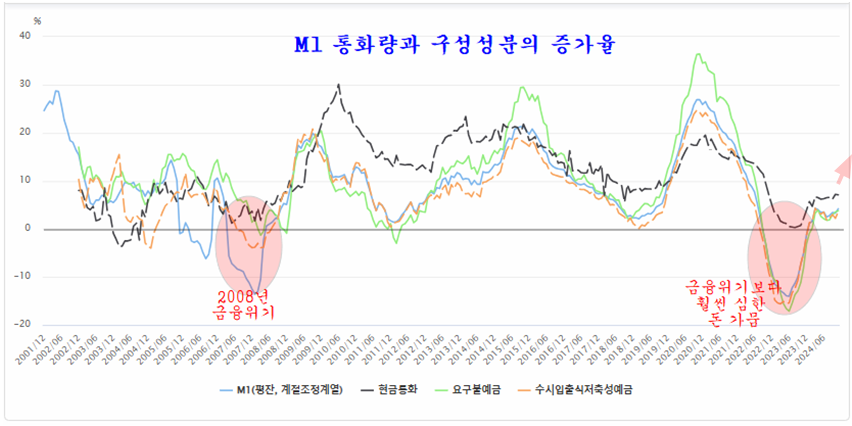 쥬라기: 한국은행이 공급하는 돈과 시중에 유통되는 돈의 양이 감소하면서