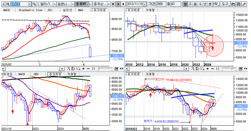 쥬라기: 오늘 홍콩h지수는 13.76% 하락하면서 분기봉 저점을 잇는 추세에 닿았죠.