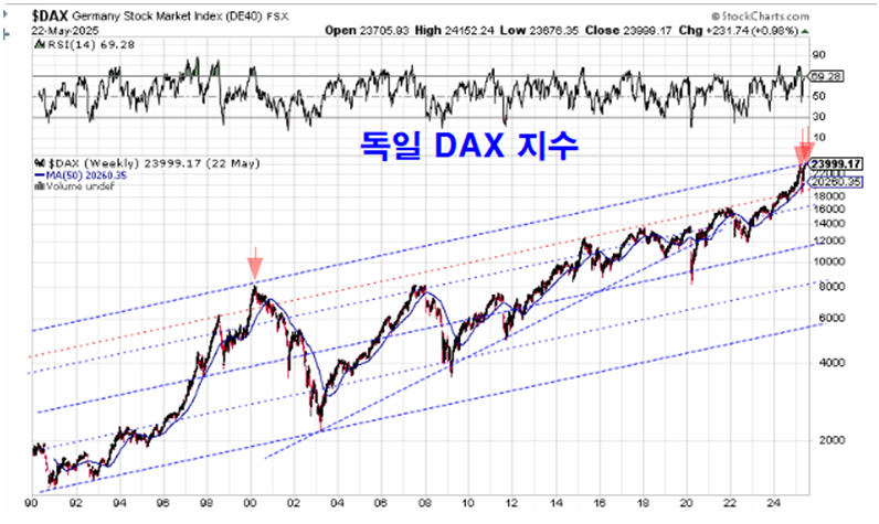 쥬라기: 미국 대형주 지수와 유럽의 주가를 대표하는 독일 DAX 지수의 천정은