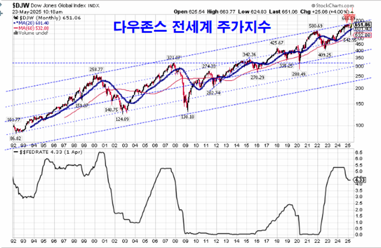 쥬라기: 특히 미국과 유럽의 비중이 높은 세계 주가지수(다우존스 글로벌 지수)도