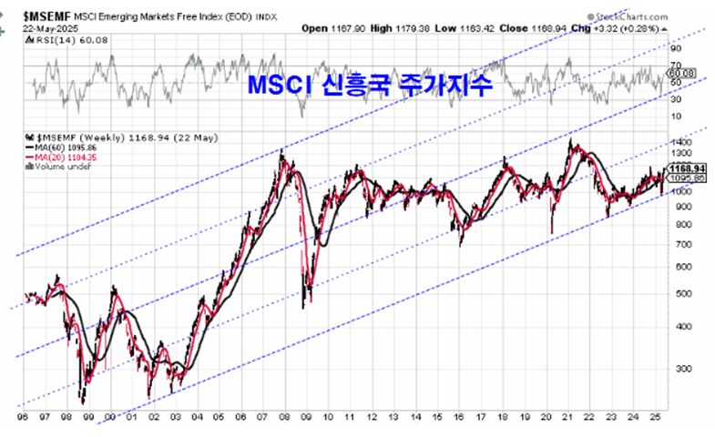 쥬라기: 신흥국 주가지수는 대세 채널 구도에서 선진국과는 상반된 위치에 있어