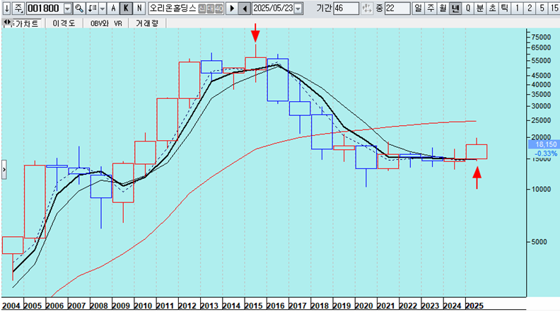 쥬라기: 현시점에서 주가가 오르지 않고 하락하여 장차 상승의 가능성이 큰