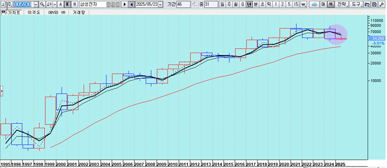 쥬라기: 이후 3년에 걸쳐 주가가 오르지 않고 하락해있는 상태이죠.
