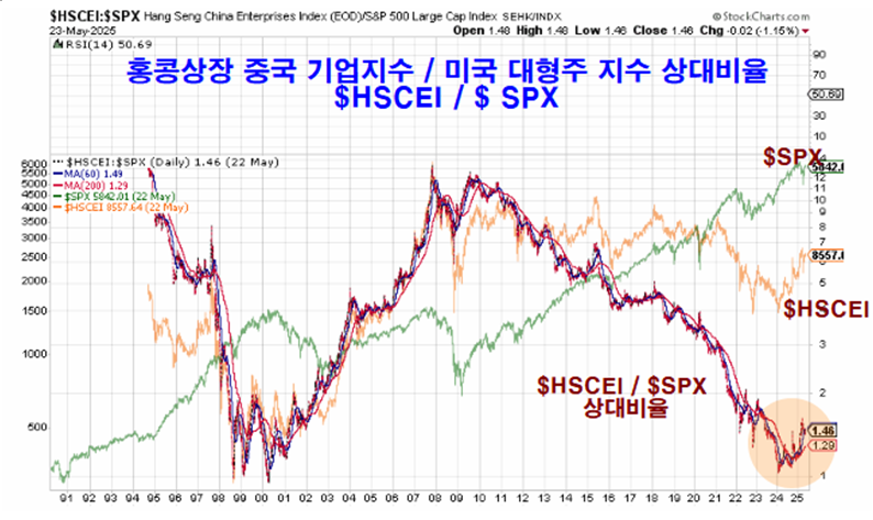쥬라기: 홍콩시장에 상장된 중국 50기업 지수인 $HSCEI를 미국 대형주지수 $SPX