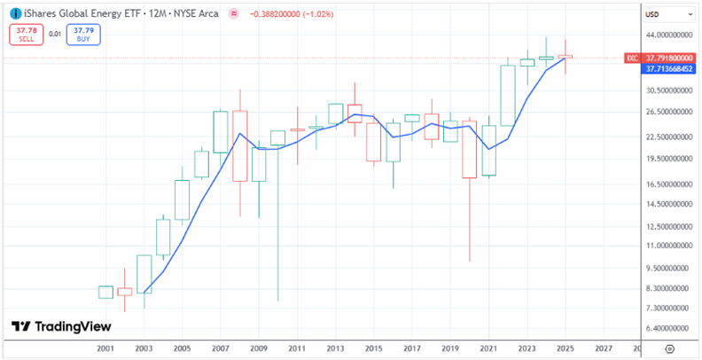 쥬라기: 에너지 섹터 펀드인 IXC는 3년간 정체한 가운데 연봉이격 조정 기준인