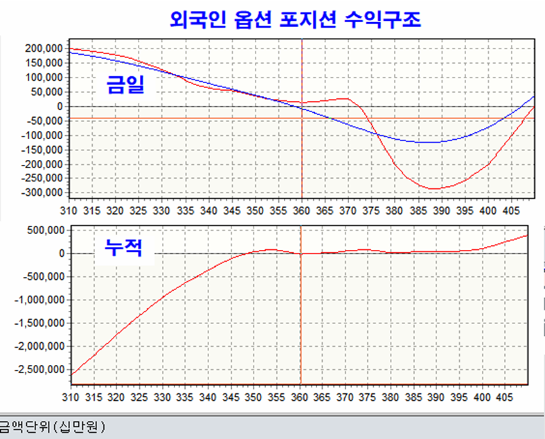 쥬라기: 옵션 시장에서는 외국인이 335 - 360 정도의 스트랭글 매도포지션을