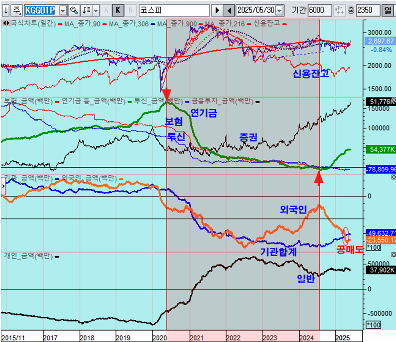 쥬라기: 2020년 이후 4년 넘게 내리 주식을 매도만 늘리면서 주가가 하락했었죠,
