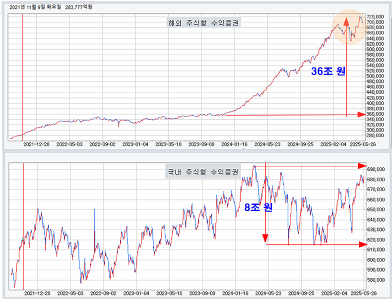 쥬라기: 반면 국내 주식형 펀드는 2024년 1분기 최고 69.5조원에서