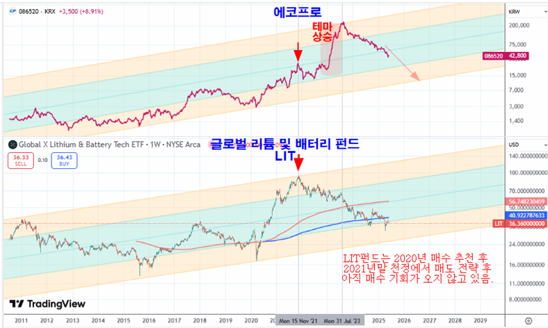 쥬라기: 이후 리튬가격 하락에 따른 급격한 실적 추락과 함께 주가가 하락하죠.