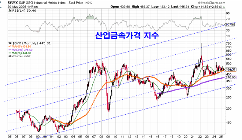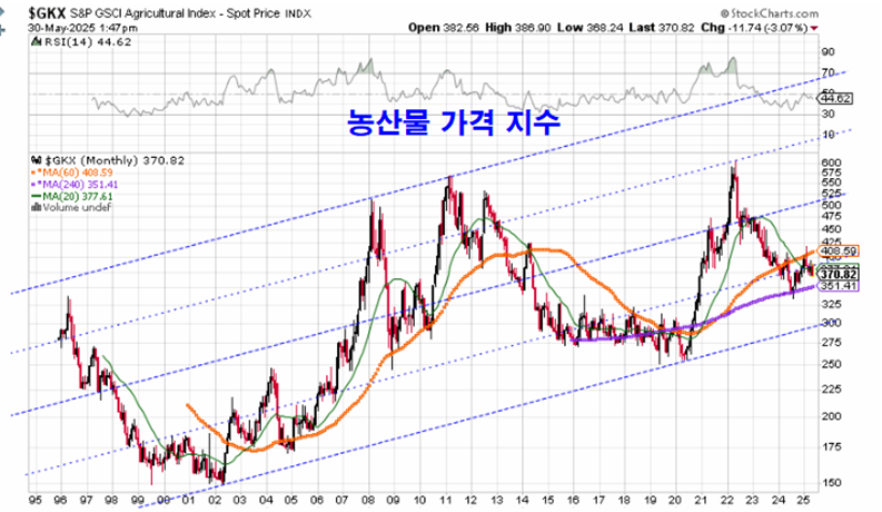 쥬라기: 그러나 이들 에너지, 금속, 곡물 가격지수의 장기 추세 구도상