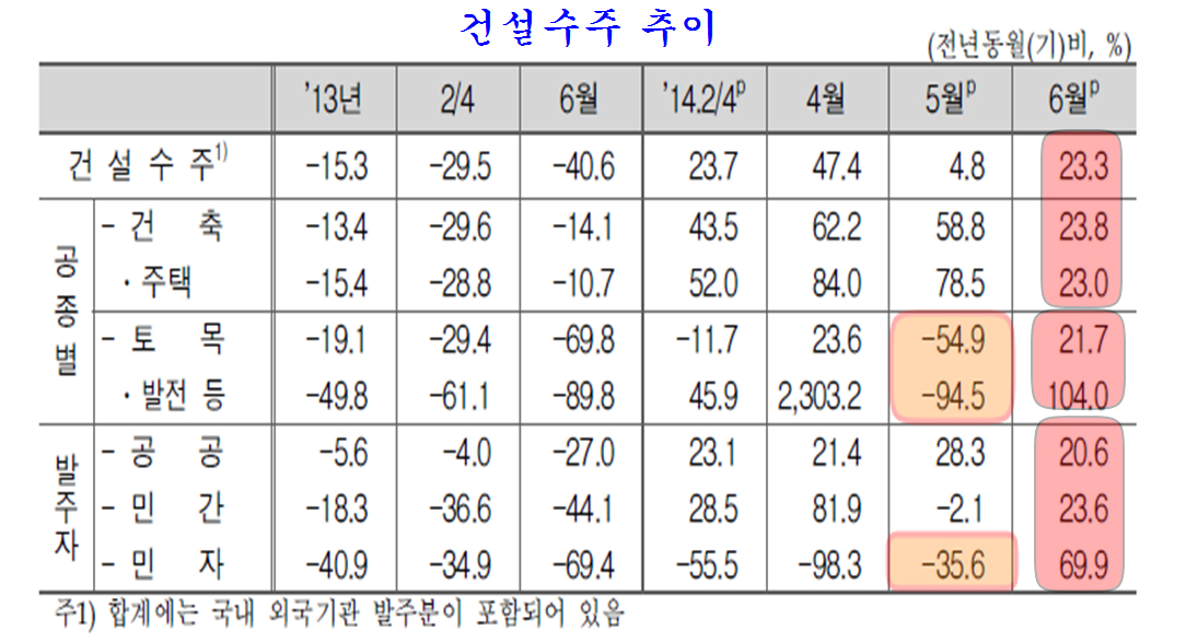 세계 증시와 무관하게 움직이는 국내 건설은 점차 확산되는 주택 분양으로 건설과 건축자재 업이 활발하다. 6월 지방자치단체장 선거와 함께 각 지자체장의 허가를 득해야 하는 프로젝트들이 잠정 스톱되면서 4월과 5월 다소 주춤했고 이 영향으로 내수 경기가 둔화된 것으로 나타났지만 6월 지자체 선거가 끝나고 불확실성이 사라지면서 허가를 받아야 하는 각종 사업이 활기를 띠게 된다.