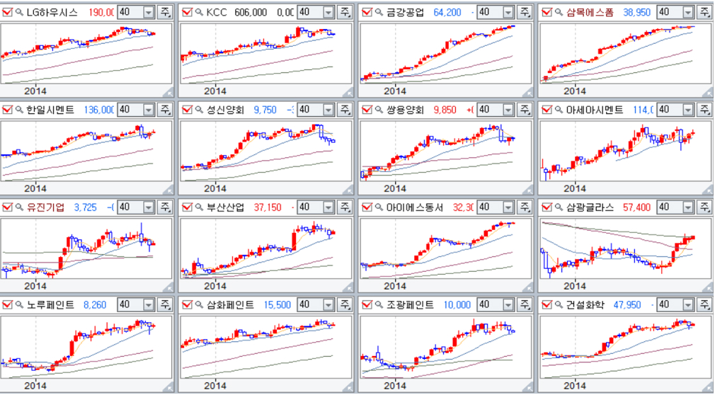 건설과 관련하여 건설 자재와 관련한 업종은 당연히 실적 개선이 계속된다. 주택분양 증가가 이어지는 한 자재 업종은 매수/보유 전략이 지속되며 하락하면 더욱 좋은 매수의 기회가 된다.