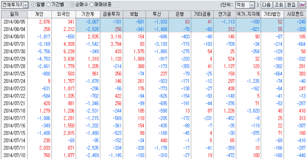 그러나 이번 주에 접어들어 기관은 더욱 매도 공세를 거세가 가져가며 지수의 상승을 막고 하락으로 유인하고 있다. 선물, 옵션, 주식, ETF, ELS, 공매도까지 등 모든 포지션에서 하락에 베팅하는 기관은 도대체 무슨 생각으로 거래를 하는지 도시 모를 일이다. 더구나 연기금이나 보험까지 여기에 가세하는 점은 더욱 그렇다.
