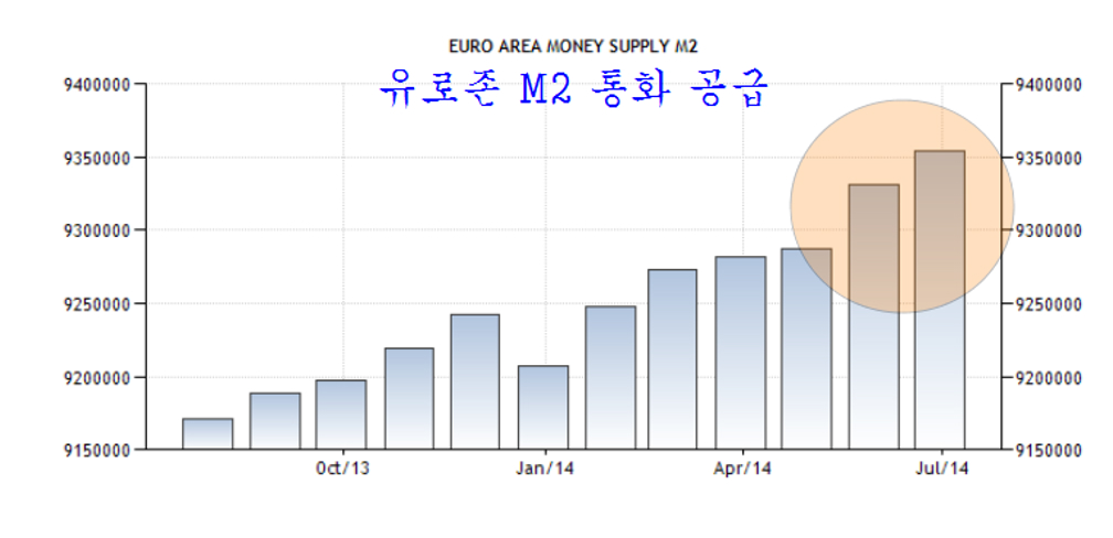 2010년 이후 극심한 긴축 정책으로 돈줄을 죄면서 부채 축소 정책을 이어왔던 유럽 17개국 블록인 유럽연합의 돈이 풀리는 모습이다. 그간 미국의 돈이 풀리는 가운데 중국, 유럽, 기타 나라들이 돈줄을 죄는 과정에서 3년간의 어려운 경기가 이어졌지만 이제 중국과 유럽 그리고 여타 나라들이 돈을 풀어 놓는 과정에서 경기 호전과 주가를 비롯한 자산 가치 상승이 시작된다.