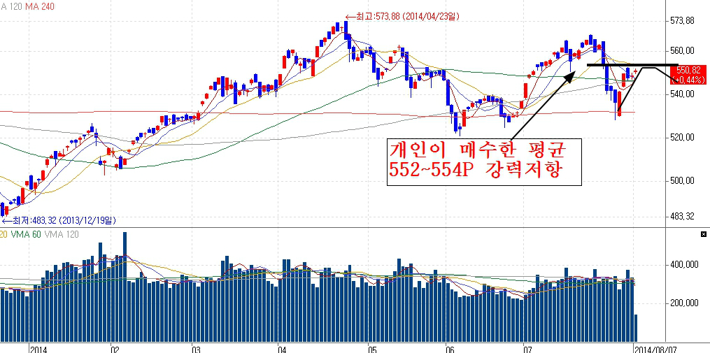 개인이 4000억을 매수한 시장을 기관과 외국인이 더 높게 매수해줄리 없습니다.