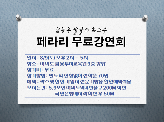 종목은 8월9일 강연회에서 공개해 드립니다.