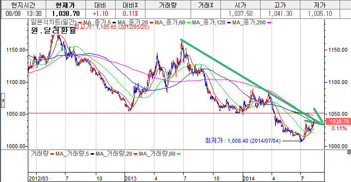 원,달러 환율이 일시적으로 반등을 하고 있지만 추세적인 하락세를 지속하고 있다. 이는 외국인 투자자 입장에서는 환차익에 대한 기대감을 높일수 있다.