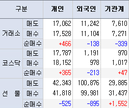 개인 매수, 외국인, 기관 매도