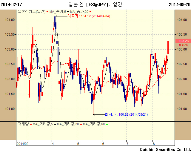 여기에 엔달러 환율이 104엔에 육박하면서 다시 엔저 공포가 불거지고 중국 HSBC PMI가 예상치 51.5 보다 낮은 50.3으로 나온 점 역시 부담입니다.