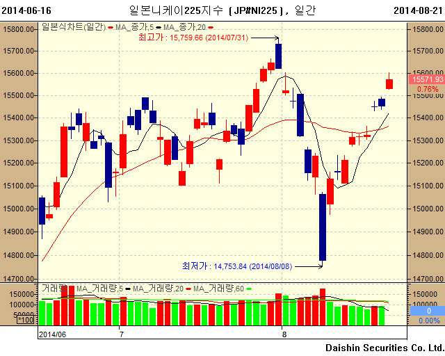 한 가지 주의해야 할 사안도 있습니다. 이는 엔화 문제인데요. 오늘 엔화가 약세를 보이면서 한국, 중국, 대만, 홍콩 등 그간 강세를 보이던 신흥 지수가 빠지고 일본이 강하게 움직이고 있습니다.