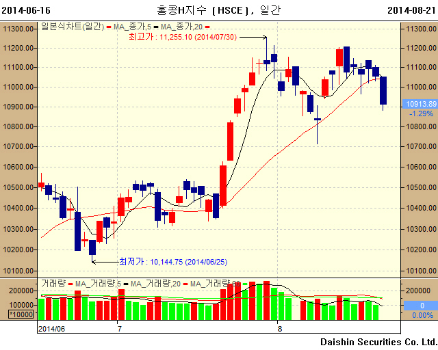몇 가지 핑계거리가 같이 붙어 시장을 내리게 하고 있습니다. 미국의 금리인상 시기가 빨라지면 우리나라에서도 내년 같이 금리를 올릴 가능성이 생기고 이 경우 경기 부양 효과가 희석되는 것이 아닌가 하는 우려감인데요. 실제 금융, 증권 업종이 밀리면서 이런 우려를 반영하고 있네요.