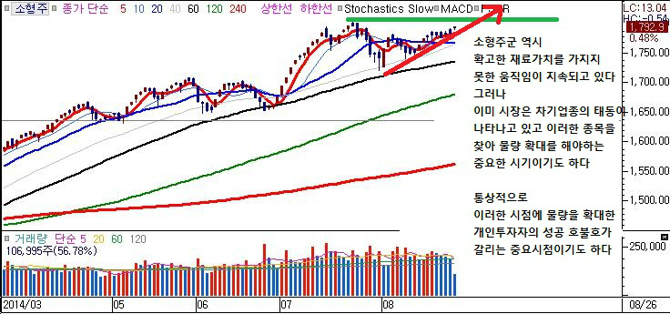 그러므로 투자자분들은 지금 이러한 시기에 조정이 완료되고 있는 소형주 종목군에 대한 적극적인 물량 확대를