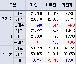 외국인, 기관 매수, 개인 매도