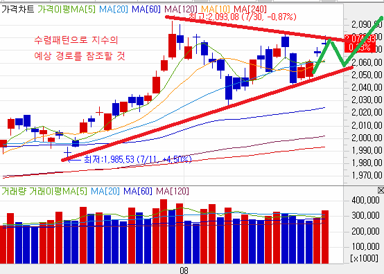 한번 정도 다시 조정구간으로 진입할 수도 있으니 지수의 흐름을 잘 살펴보도록 하자.