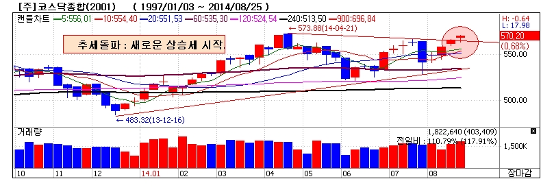 추세를 돌파한 코스닥 시장 새로운 상승세는 계속 된다.