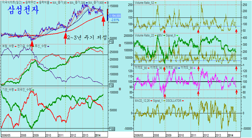 주가가 재차 조정을 받는 과정에서 삼성전자와 현대차가 조정이 컸으나, 이 두 기업 역시 과매도권 상승 전환조건에서 조정이 연장되고 있다는 점에서 상승을 앞두고 있고, 이 때문에 삼성전자와 현대차 그리고 업종이 함께 움직이는 강한 상승 국면이 준비되고 있다.