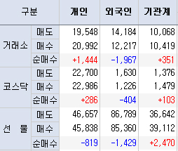 1. 외국인 선물, 코스피, 코스닥 순매도