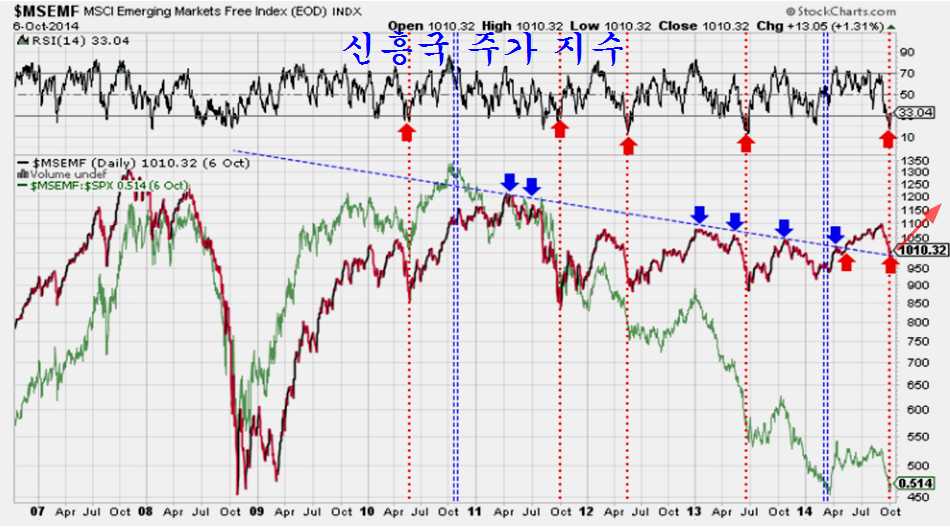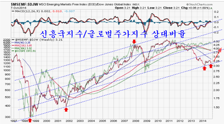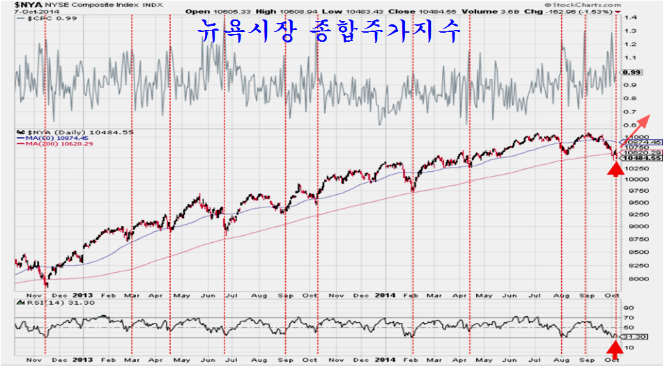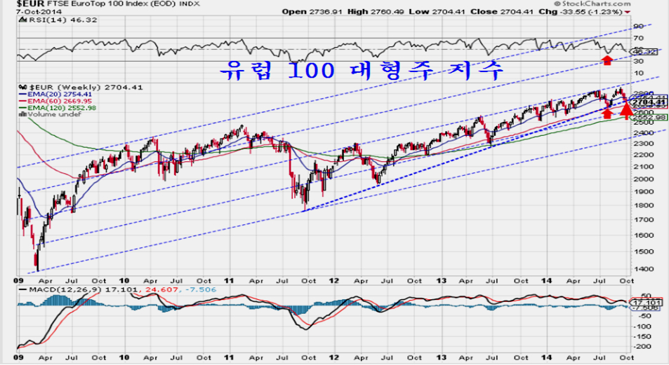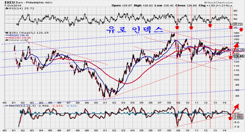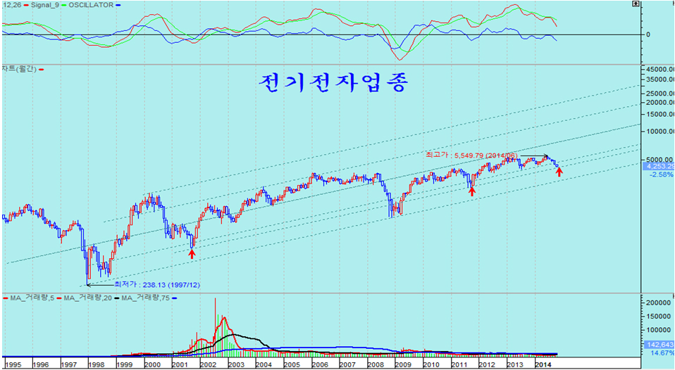 기술적으로 보면 8월 이후의 주가 조정 국면은, 매년 연례행사로 나타난 하락과 같다. 2011년 9월, 2012년 5월말, 2014년 2월말의 조정에 해당하는 조정상태를 나타내며 균형에서 가격을 아래로 변형시키는 이런 조정이 나타난 후에는 대부분 급등으로 이 가격을 회복하여 원상태로 되돌아가게 된다.