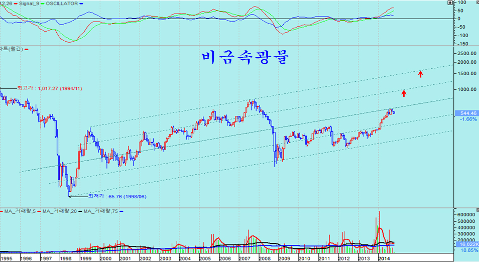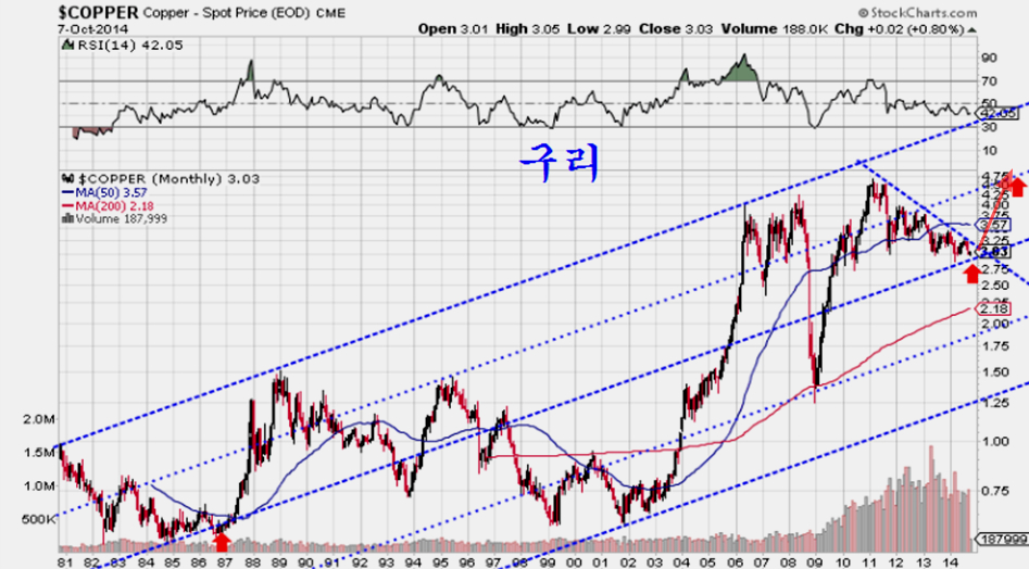 장기지지권에 접한 곡물을 포함한 농산물을 일제히 상승으로 돌아서고 있는데 가격의 균형선이 대세 채널의 중심인 만큼 향후 가파른 상승을 기대한다.