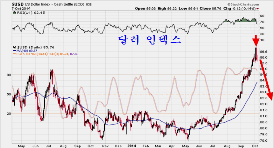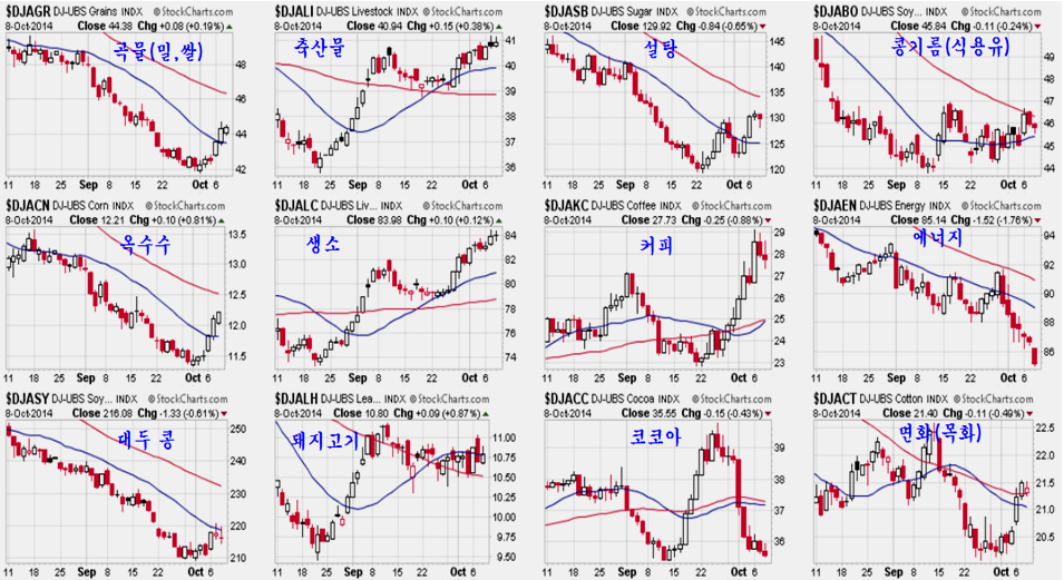 한국 시장 뿐 아니라 세계의 모든 시장 상품, 주식, 채권, 곡물, 에너지, 금속, 환율 등 모든 것들의 추세가 바뀌는 중요한 전환점이다. 각 차트는 10월 7일 화요일 기준이다.