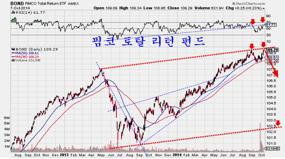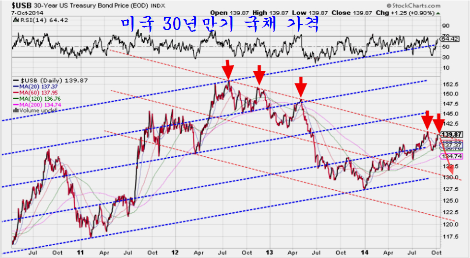 특히 이 채권의 추세 전환은 대단히 중요하다. 전세계의 70조 달러에 달하는 운용자산의 배분이 변하며 채권이 하락하고 주가가 오르면 채권시장에서 주식시장으로 막대한 자금이 이동하며 주식시장은 유동성 급등장세가 나타난다.