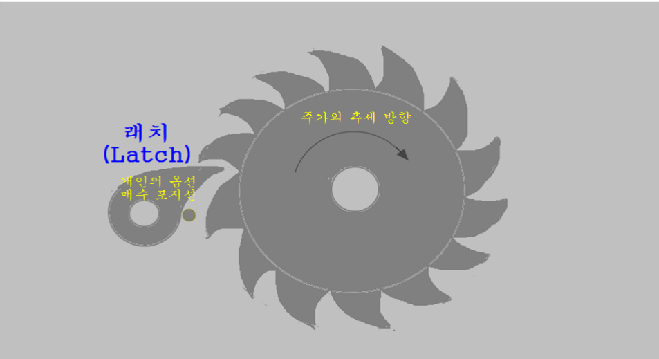 특히 손쉽게 매수하는 외가격 옵션 매수포지션은은 마치 배구장 배구네트를 고정시키는 장치인 래치(Latch)가 되어 아무리 오를 것처럼 보이는 시장도 개인이 옵션을 사고 난 후에는 오르지 못하게 가로막는다. 이 원리를 모르고 옵션을 사면 사기 전에 생각했던 대로 주가가 오르기를 바라는 사람이 많다.