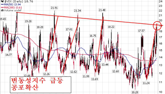 안녕하세요! 페라리 입니다. @미국 변동성확대가 부담. 변동성은 공포를 부른다. *한국이 쉬는사이 미국증시는 엄청난 변동성을 보였습니다. 고공권에서 높은 변동성은 추세전환 신호로 해석됩니다. 최근 코스닥지수도 이런 변동성이 커지면서 점차 상승에너지가 소멸되는 모습을 보였습니다. 변동성은 투자자들의 공포심을 뜻하게 되므로 변동성지수가 일명 공포지수라고 불리는 것입니다. 최근 미국의 공포지수는 큰 폭의 상승을 기록했고, 위험자산에 대한 선호를 알리는 탐욕지수도 3을 기록해 수년만에 최저치인 3을 기록하고 있습니다. 글로벌유동자금이 수익 보다는 안전을 택하고 있음을 알 수 있습니다. *미국 공포지수(변동성지수) *탐욕지수 보통 시장이 큰 폭락세를 보일때 탐욕지수가 최저치를 기록하는데.. 이번에는 하락폭이 크지 않음에도 불구하고 최저치를 기록하고 있다는 점이 부담이다. 큰 틀을 봐야 합니다. 당장 시장의 상승,하락이 아니라 앞으로 추세가 어찌 될지를 봐야 하는 것입니다. 미국의 양적완화 종료를 앞두고 유동자금이 달러로 몰려들고 있는 상황인데 달러인덱스 지표를 보면 그 현상이 얼마나 심한지 알 수가 있습니다. *달러인덱스 *국내증시는 중국이 어느정도 안전판 역활은 해주고 있지만 그래도 하락추세는 지속되고 있습니다. 그동안 한국증시는 미국증시와 반대로 움직여 왔는데 이번에도 그렇게 될 수 있을지 지켜봐야 겠습니다 만약..금일도 증시가 양봉을 형성해 준다면 수급적인 측면에서는 오히려 더 좋을 수도 있을 것입니다. *원/엔 환율 1000원 회복되면 수출주 반격가능성 높아집니다. 시장의 반격이 시작된다면 낙폭과대 수출주들이 일시적 주도권을 잡을 수가 있습니다. *거래소는 저점이 붕괴되면서 다음 지지라인인 1930p까지는 추가하락이 예상됩니다. 급락 이후 반격이 시작되면 그때는 내수주 보다는 낙폭과대 수출주가 주도권을 잡게 될 것입니다. 이번 하락으로 인해 배당매력은 더욱더 커지게 되었으니 이부분도 명심해야 합니다. @코스닥도 여전히 부담 얼마전 코스닥시장도 변동성이 큰 모습을 보였고 그 후 하락파동이 나타나고 있습니다. 코스닥 하락은 크고 반등은 약한 모습이 이어지고 있으므로 일시적 반등에 속지는 말아야 합니다. 코스닥은 570p가 회복되면 그때는 다시 매수를 고려해 볼 수 있으나 지금은 관망전략이 좋습니다. 필자는 이미 시장의 위험성을 예고드린바 있습니다. 위험은 최소화 하는게 좋을것으로 보입니다. @하반기 관심섹터 1)환경관련주 중국 올해 스모그 경보 중국의 환경정책 주목. 환경관련주 매수필요 2)질병관련주--시장 하락시 투기적 매수세 유입 에볼라바이러스, 조류독감, 신종플루 관련주 3)반도체장비 시장의 주도가 반도체장비로 옮겨오는듯한 모습입니다. 화장품등 중국관련주 조정, 게임주도 조정과정을 보이면서 그 자금이 반도체장비로 옮겨가고 있는 모습이 포착되고 있습니다.