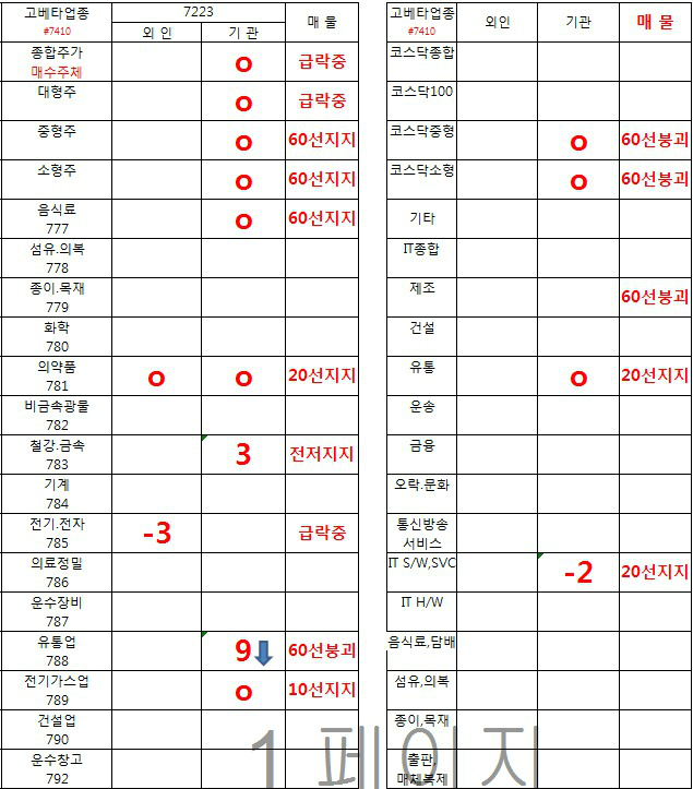 업종 수급 현황 !!
