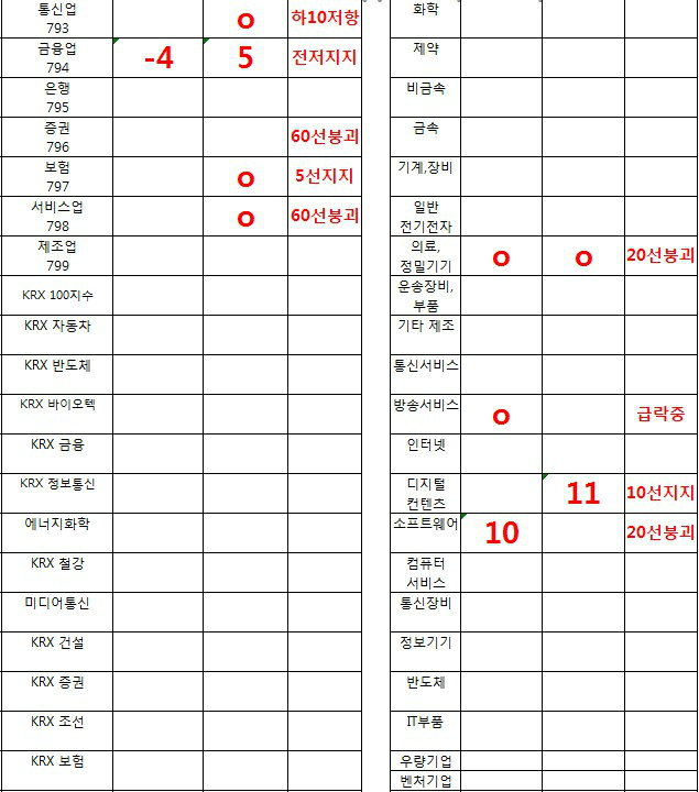 코스닥은 “의료/정밀기기, 디지털컨텐츠”로 수급이 들어오는 모습은 보이나 이 역시 차트의 흐름이 좋지 않다.