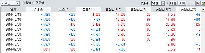 지난 분석글에서 필자는 "10월 선물,옵션 만기일 전후가 외국인의 선물시장에 대한 포지션 변화가 나타날 가능성이 있는데 금주 금요일 이후의 외국인들의 매매구도에 대한 변화 여부를 체크하면서 대응할 필요가 있다." 고 이야기 한바있는데 사실상 외국인들은 만기일 부터 선물시장에 대하여 그동안의 매도에서 매수포지션으로 전환했다.
