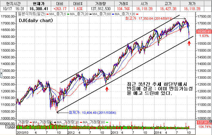 첫째. 외국인 투자심리와 매매구도에 영향을 주는 미국시장이 반등에 성공하였다.