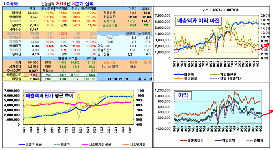어제는 3분기 실적을 발표한 LG화학이 하한가 가까이 하락을 했다. 3분기 실적은 2분기 실적에 비해 더 나빠지지 않아 바닥권으로 볼 수 있으나 악재성 뉴스와 함께 기관이 대량 매물을 쏟으며 투매를 했다.