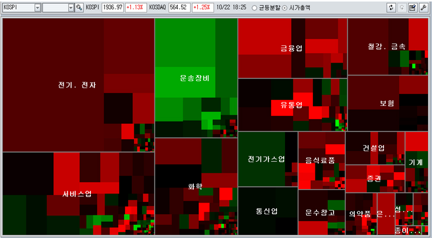 이 때문에 오늘도 외국인의 선물을 따라 지수는 등락을 거듭한 끝에 1.13% 상승에 머물렀다. 모처럼 금융업을 포함한 건설, 은행 등 트로이카가 상승하고, 철강, 유통, 음식료, 서비스 등 상승이 나타났지만 자동차를 중심으로 한 운수장비 업종을 하락시켜 지수의 상승을 막았다.