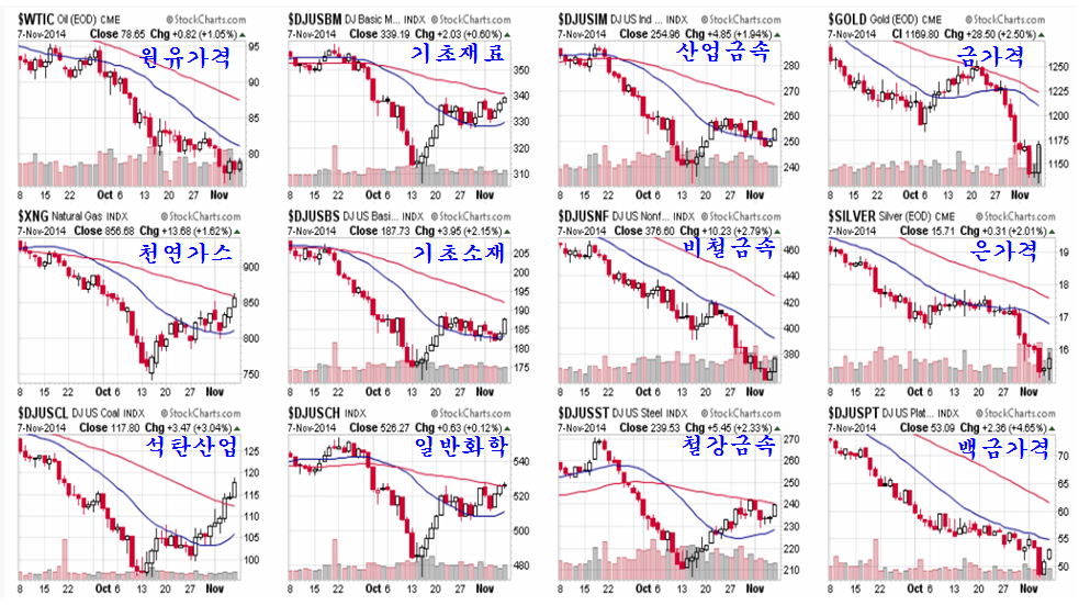 실제 7일 뉴욕시장에서는 상품과 관련한 주요 업종의 주가가 일제히 상승하고 있다. 그간 20일 평균을 돌파한 후 20일 평균에서 횡보함으로써 N자형 상승을 위한 매물 소화과정을 거쳤는데, 이제 상승이 시작됨으로써 보다 탄력적인 변화를 보일 듯 하다.