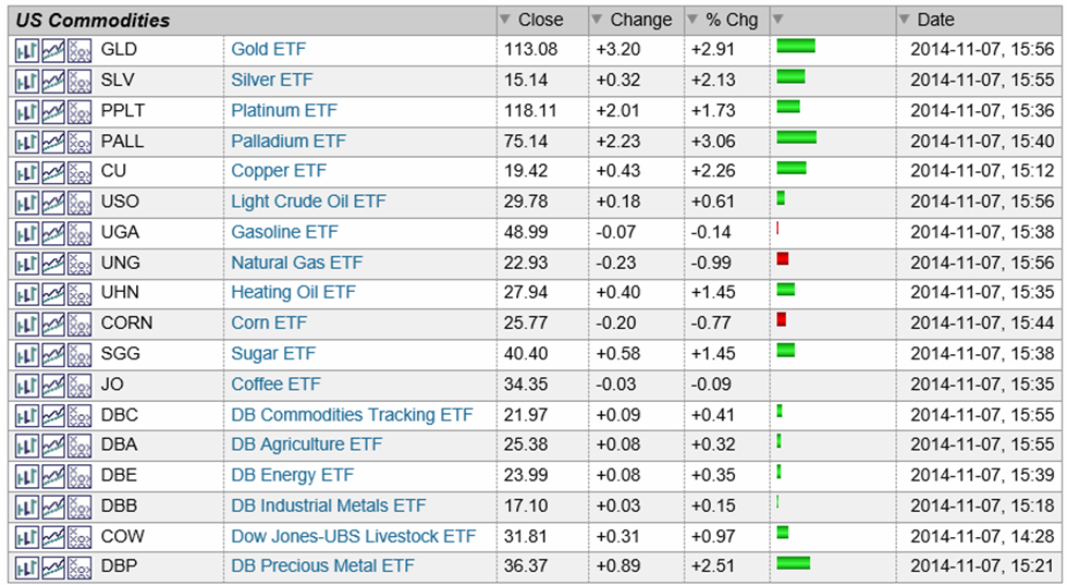 따라서 금가격의 대세 추세의 상승 반전은, 상품가격의 상승 뿐 아니라 경기민감주와 이머징국가의 주가 및 달러 하락과도 관계가 있다. 이런 전환점 이후 어젯밤 금가격을 비롯한 귀금속 가격이 일제히 상승하는 모습을 보여준다.